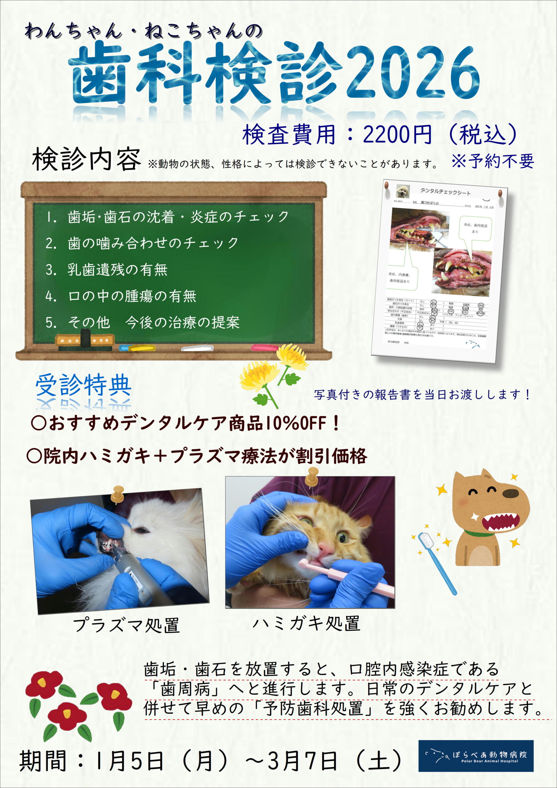歯科検診2026のお知らせ - ぽらべあ動物病院|宮城県富谷市(旧パセリ動物病院)